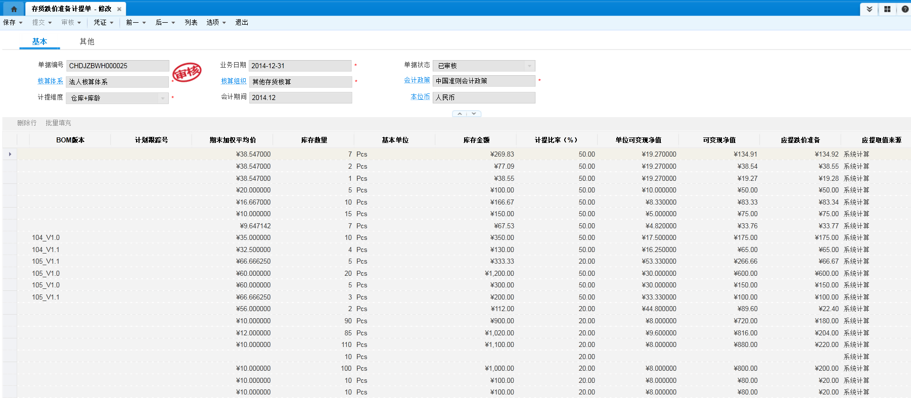 存貨跌價(jià)準(zhǔn)備計(jì)提單